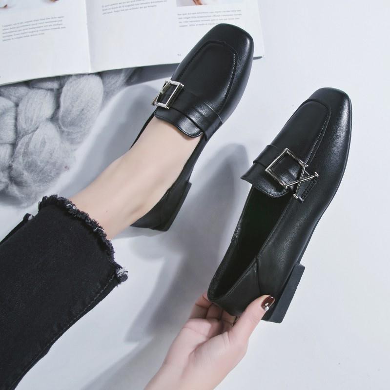 chỉ còn 153,000đ D180- giày tây nữ mũi vuông da mềm phong cách trẻ trung năng động, giày mọi nữ hàng Quảng Châu