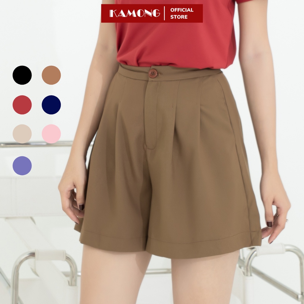 Quần short nữ cạp cao KAMONG dáng quần ống rộng đủ màu, đủ size Q003 free ship